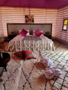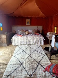 - Une tente de luxe 5 étoiles pour deux personnes. Afin de profiter du meilleur de notre bivouac de luxe au milieu des paysages du désert de Agafay. Dormez avec nous sous les étoiles du Maroc.